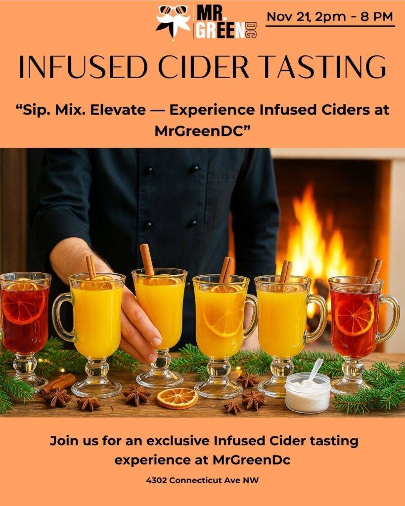 MrGreen DC Events> Get notified about future eventsNotify meUpcomingPastAll|Sort: Date โ|Gallery ViewCalendar View๐ FreeExpiredINFUSED CIDER TASTINGFri, Nov 21 ยท 2:00pm โ 8:00pm๐ FreeExpiredEasyDay Edible TastingThu, Nov 6 ยท 4:00pm โ 8:00pm